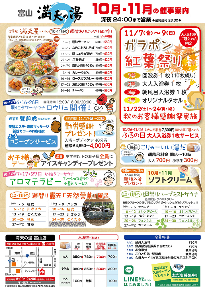 満天の湯「富山店」では下記の期間イベント湯を開催します。