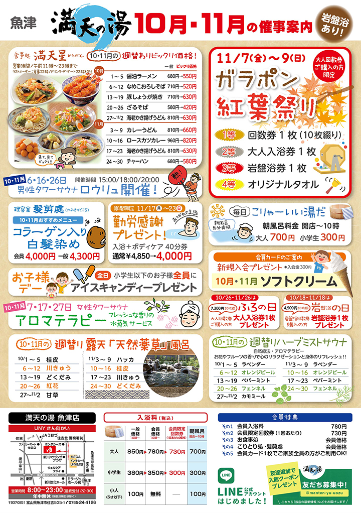 満天の湯「魚津店」では下記の期間イベント湯を開催します。